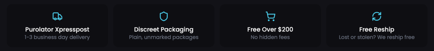 Orders over $99 qualify for free Purolator, Xpresspost, UPS shipping anywhere in Canada. For orders under $99, a flat-rate shipping fee applies. We never charge hidden fees.